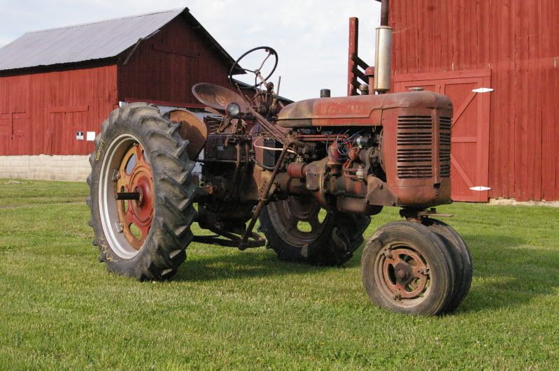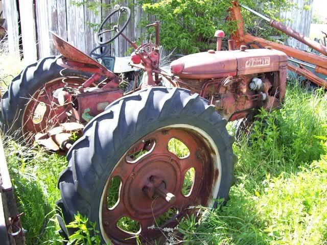 No, this is not a new one, this is Farmall #2, a very um,... well weathered '49 Farmall C I discovered in a friends fencerow last spring, (2008), well I diddn't really discover it, as I'm fairly sure they knew it was there. It had been intended as a parts supply for a Farmall A. But after some soul searching and scrounging fundage I came up with $100 to put down and enough conviction to talk the owner out of parting it out.
