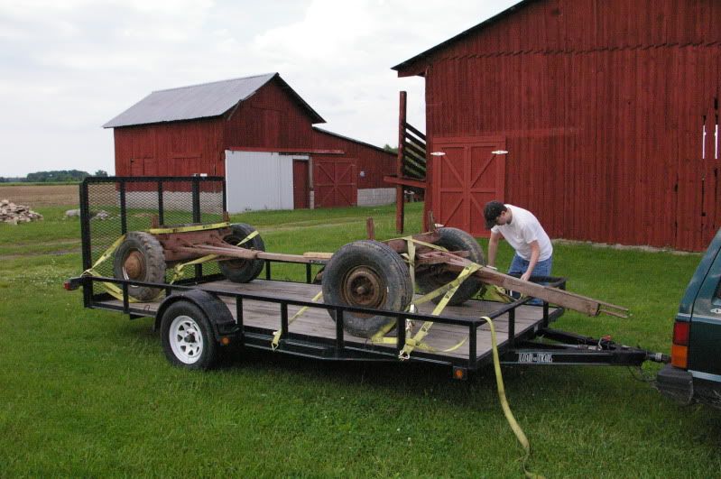 I still kept searching for my future hay wagon more out of the need to keep pushing on with something positive. Yesterday, I answered a craigslist ad, a day late to get a sickle mower for $25, but I did get this old running gear for $50. It was broken in two on the connecting bar, I made a splice with some steel stock and she's as strong as new.