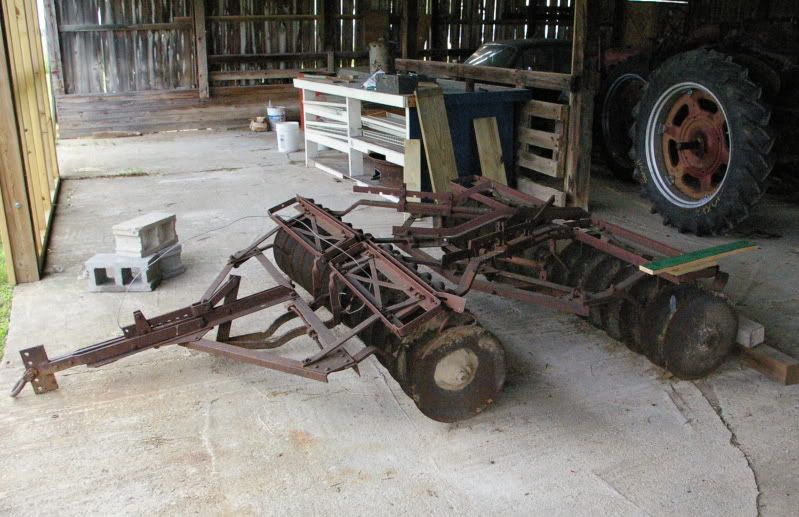 Last year, I was over at an older Farmers place a few roads over. Talking old tractors, live steam, trains, tools and everything else you might want to ask someone who was born with a wrench in his hands. Walking his fence row, following the trackbed for the biggest home model railroad you will ever see we came upon this little disk. "Whatcha gonna do with the old disk Mr P." ...says I, I was going to cut it up last week if I hadn't come down sick" Quickly a deal was struck for the disk and I was off, once again to con Uncle Ted into coming to my rescue.
