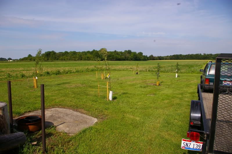 One of my biggest goals in life, is to make sure that when I finally get myself set up at the farm, that I can produce a reasonable amount of "Table" food, plus a surplus to sell in town. Reaching back into history tells us that just about every small farm in Ohio had it's own orchard. So one of my 2009 goals was to re-establish ours behind the barn. As I've said in the past, my interest generally falls to the heritage varieties. So I've collected a McIntosh, a Wealthy, a Jonathon, and today a Winesap and a Red Delicious. Along with a Bartlett Pear.